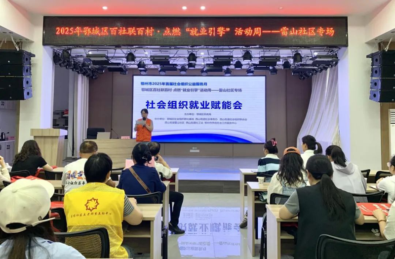 为深入贯彻落实国家就业优先战略,积极响应鄂州市首届社会组织公益服务月活动号召,充分发挥社会组织在助力乡村振兴和促进就业创业中的独特作用,6月10日上午,鄂城区民政局联合西山街道举办“鄂城区百社联百村·点燃‘就业引擎’活动周——社会组织就业赋能会”。鄂州市伟创社会工作服务中心作为协办单位,全程参与活动组织与服务,来自辖区内社会组织从业人员、公益项目管理者、求职者等代表齐聚一堂,共探就业服务新路径。