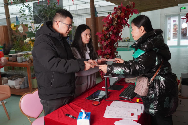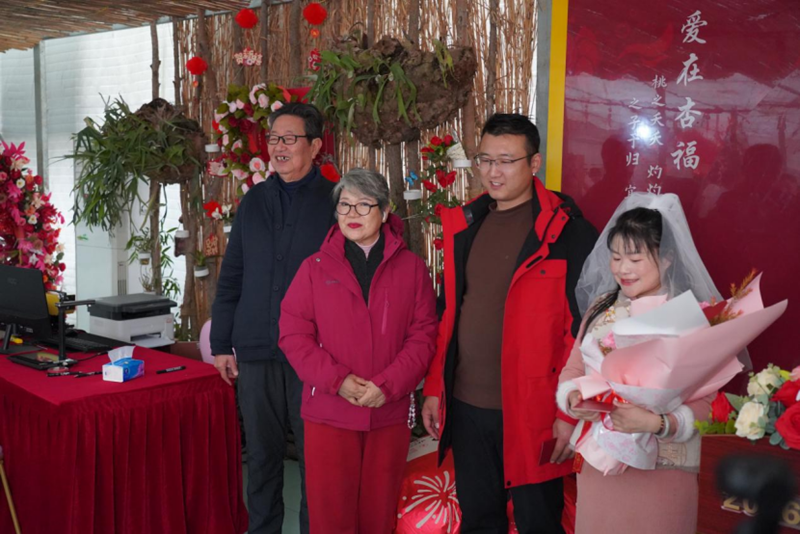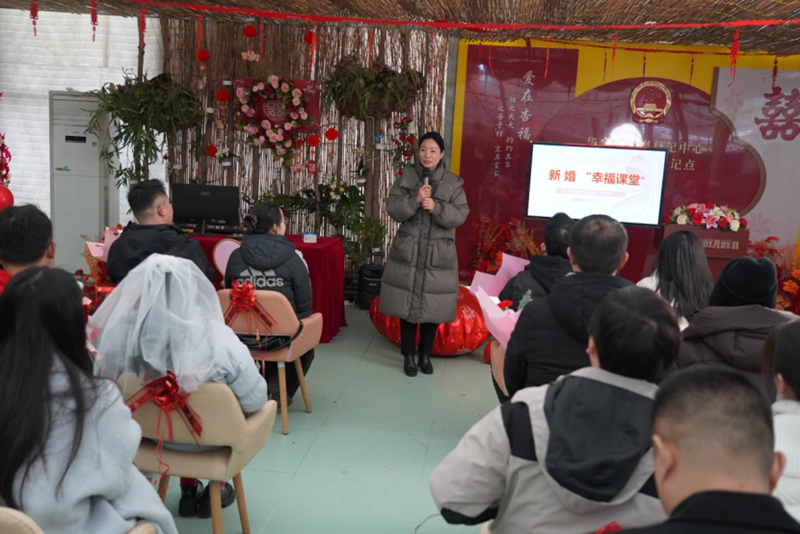 为满足新人节日登记需求,中心当天上午特别开放延时服务,工作人员提前到岗,以暖心服务为新人们的幸福“加时”。