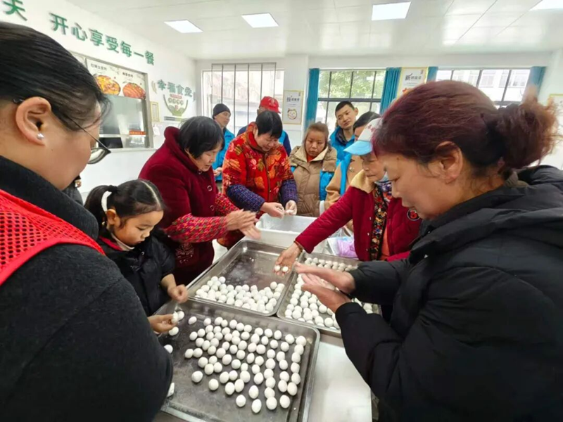 在樊川社区社区居家养老服务中心,一大早,工作人员就准备好了糯米粉、黑芝麻、豆沙等食材。老人们与工作人员围坐在一起,揉面、拌馅、搓圆,动作虽缓,却格外认真。李奶奶一边娴熟地包着汤圆,一边笑着说:“自己亲手包的汤圆,吃起来才更有家的味道!”一颗颗圆润的汤圆,包裹着甜蜜的馅料,也包裹着大家对团圆美满的共同期盼。